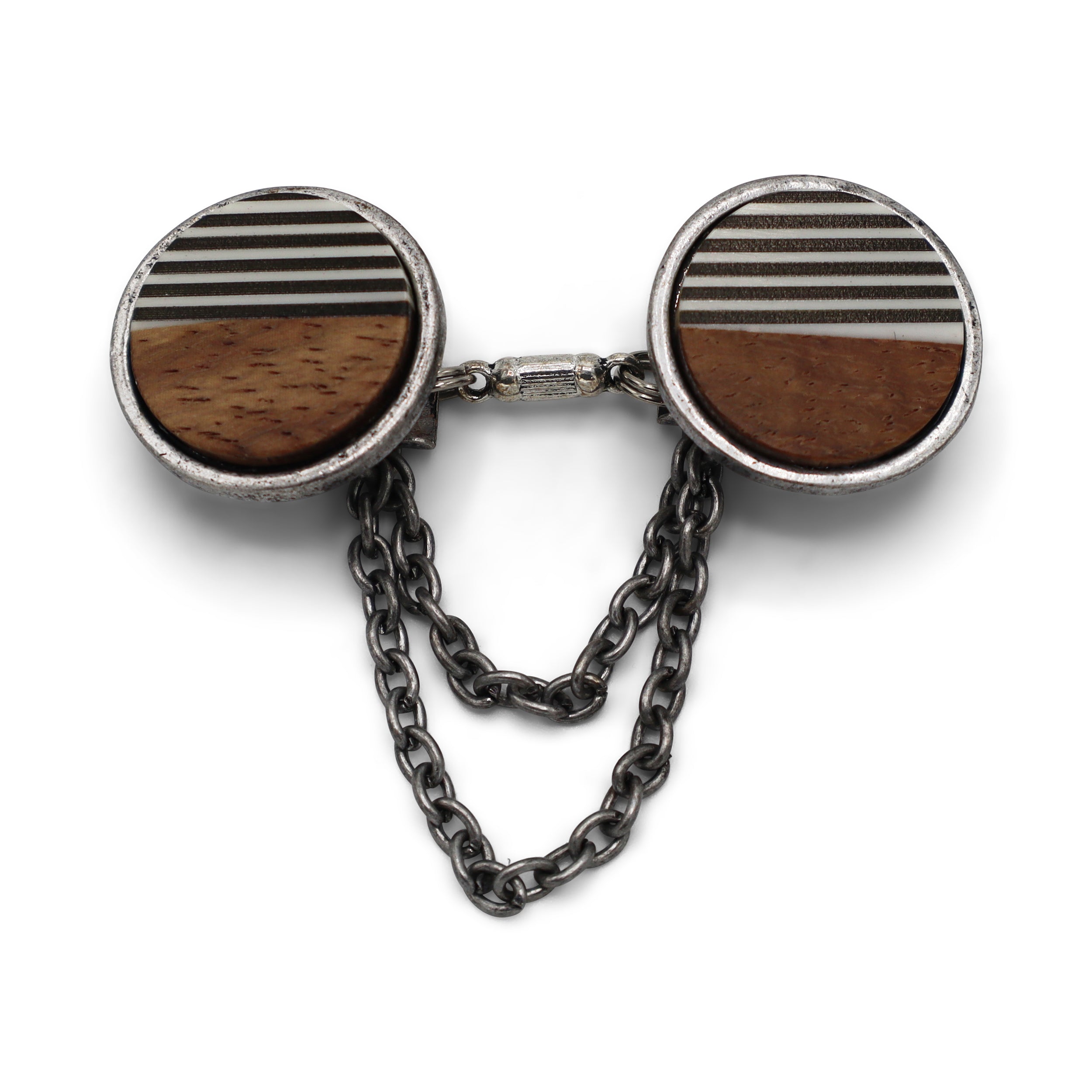 Das Set besteht aus zwei Clips, die mit einem festen, handgefertigten Abstandshalter miteinander verbunden sind.