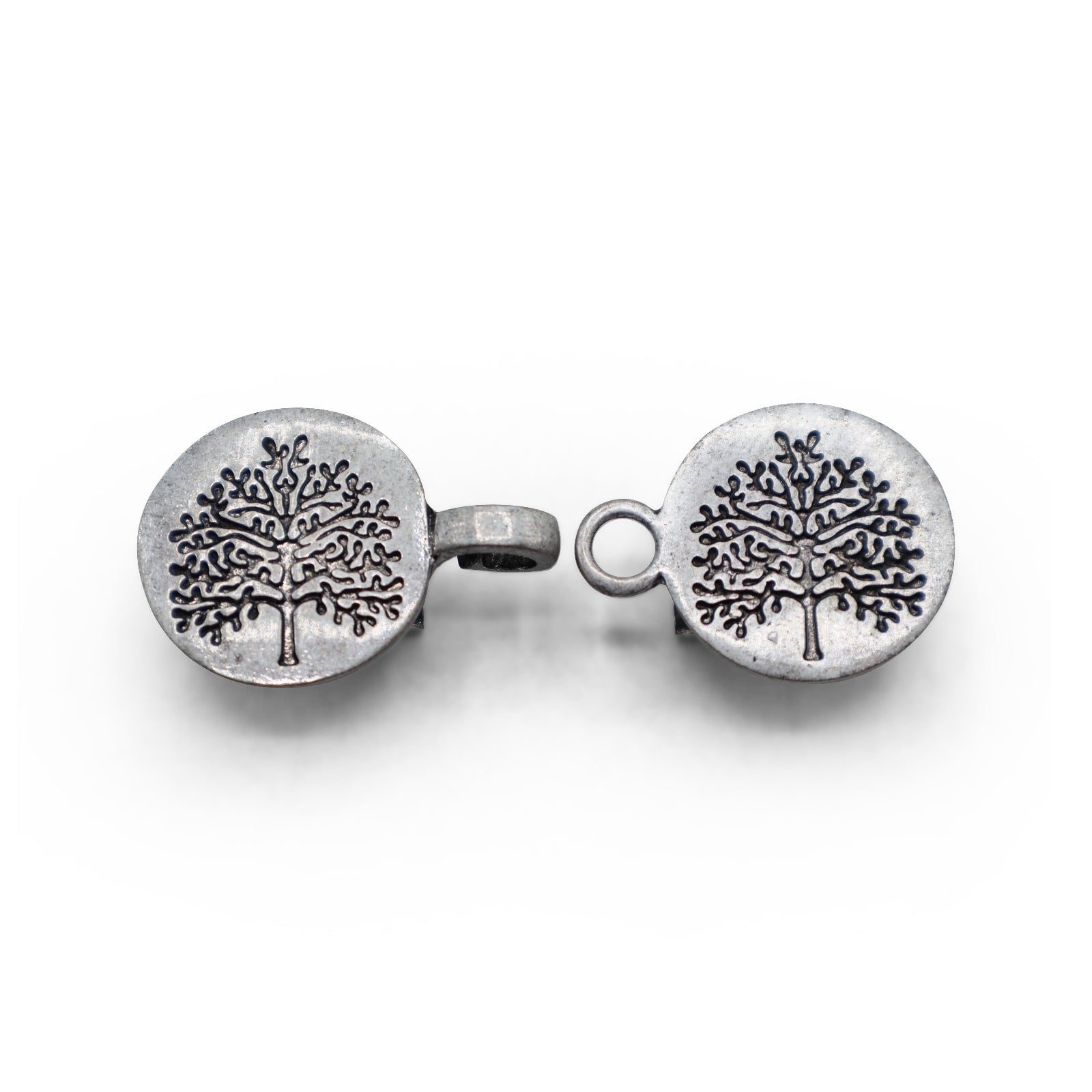 Nuovo fermaglio per gilet color argento con l'albero della vita come elemento centrale.